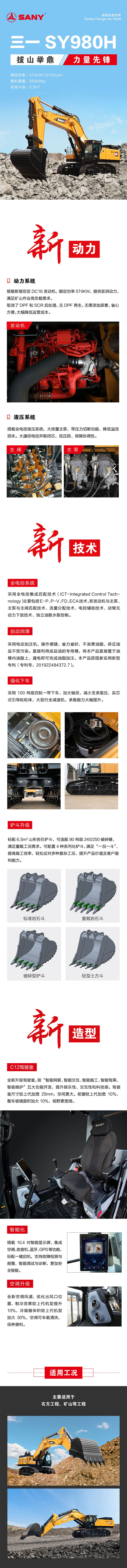 | 性能 | 行走速度:4.3/3.0km/h 爬坡能力:35° 回轉(zhuǎn)速度:7rpm 接地比壓:132kPa 鏟斗挖掘力:495kN 斗桿挖掘力:469kN |